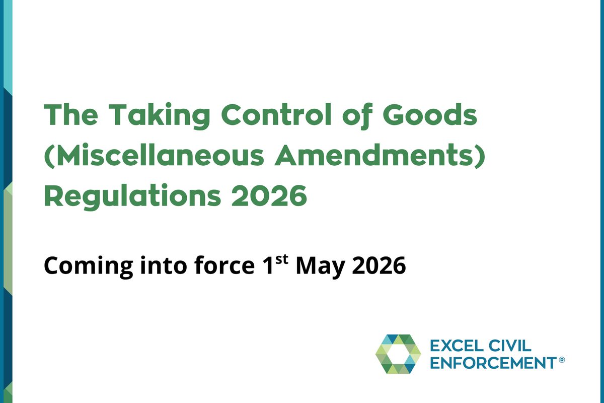 The new regulations – The Taking Control of Goods (Miscellaneous Amendments) Regulations 2026 – will come into force on 1st May and will apply to warrants and writs of control lodged with the enforcement company on 1st